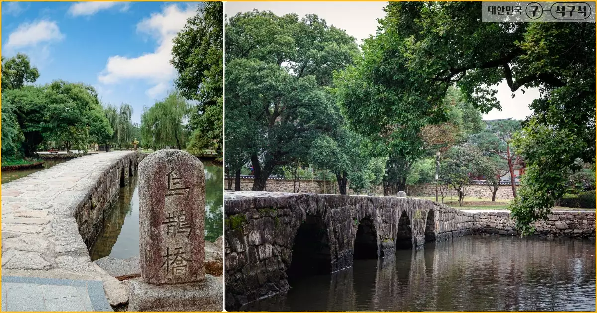 오작교는 이러한 전설을 지상에 펼쳐놓은 다리이다. 오작교를 밟으면 부부금실이 좋아진다는 전설과 춘향과 이도령의 전설까지 더해 많은 사람들이 찾는 곳이나, 처녀가 아닌 사람이 다리를 건너면 오작교가 무너진다는 무시무시한 이야기도 전해진다. 다리가 아직 건재한 걸 보면... 다행이다.